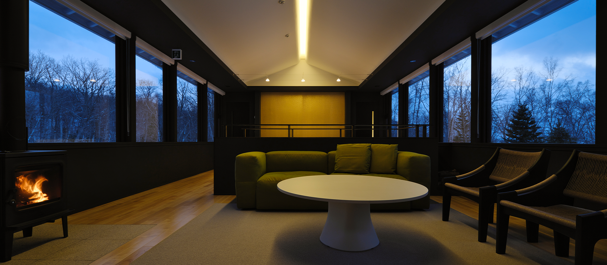 専用の温泉、プライベートサウナ(1室)、薪ストーブを備え、